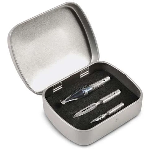 This Brause Drawing & Writing Nib Set is presented in a metal box and consists of 6 special design nibs.