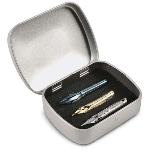 This Brause Writing Nib Set is presented in a metal box and consists of 6 special writing nibs for copperplate and script writing.