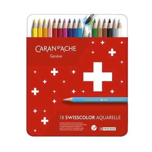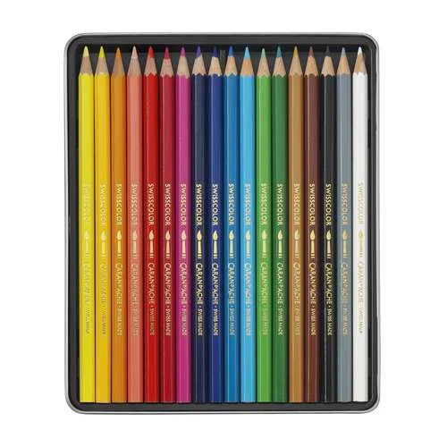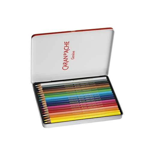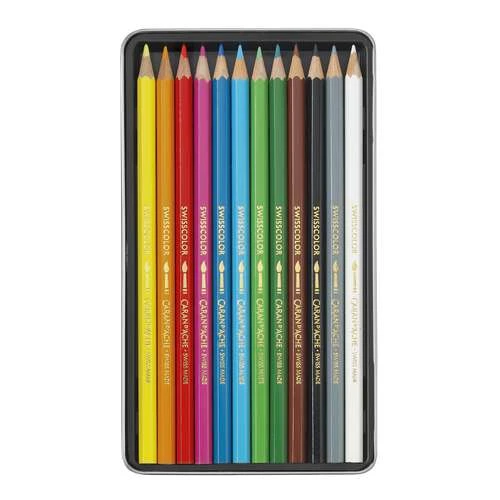 Caran D’Ache Swisscolor Water-Soluble Pencil Sets are presented in colourful metal tins. These exceptional pencils have soft, resistant leads.