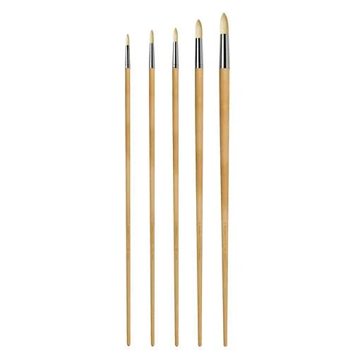 TIP: The long-handled special brush is advantageous for painting at the easel. The longer style enables the artist to paint the picture from some distance. Round brushes are ideal for details and drawing, linear painting.