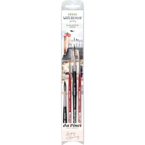 This da Vinci URBAN WATERCOLOR JOURNEY SCHLEPPER CREW Set series 5602 focuses on the schlepper brushes, which are highly appreciated by the well-known creative duo May & Berry.