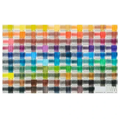 - 36 pencils (27625): Sherbert lemon, Sun yellow, Sienna gold, Tangerine, Poppy red, Chilli red, Cherry, Shiraz, Red violet, Fuchsia, Mauve, Violet, Peacock blue, Iron blue, Iris blue, Bright blue, Deep indigo, Sea blue, Teal green, Iron green, Ionian green, Field green, Felt green, Apple green, Leaf green, Mustard, Tan, Saddle brown, Baked earth, Willow, Bark, Indian ink, Charcoal grey, Ink black, Antique white and Outliner.