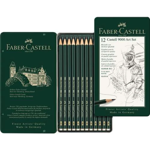 Faber-Castell 9000 Pencil Sets are available in 2 different sets of 12 pencils, presented in metal tins: