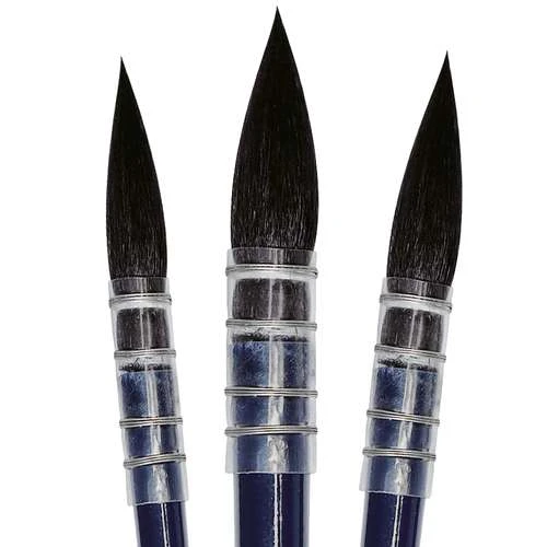 I Love Art Professional Watercolour Wash Brushes have short blue lacquered handles. The tips have fine round points and are bound with real feather quills. These are good quality brushes which represent unbeatable value for money.
