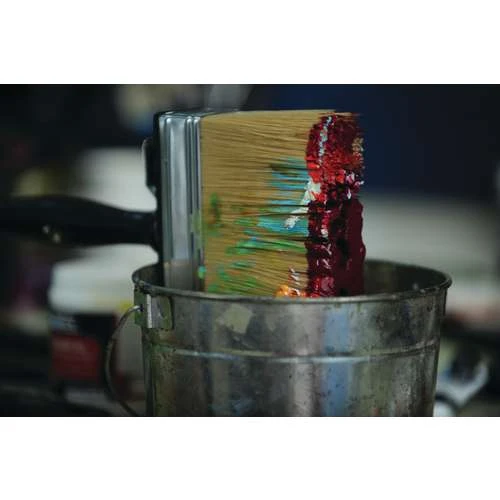 The handle on this Liquitex Free-Style Giant Wide Flat Brush can be unscrewed so the head can be attached to a broom handle for hard to reach areas. The shoulder of the brush has a metal hook so it can be attached to the side of a paint pot or bucket. The handle is black, the ferrule stainless and the bristles are synthetic.