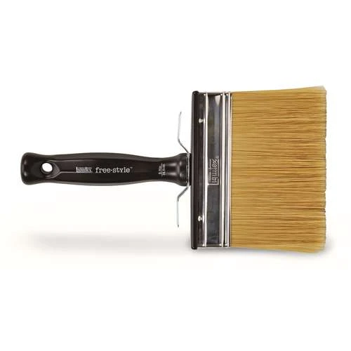 This Liquitex Free-Style Giant Wide Flat Brush is 14cm (5.5″) wide. It is ideal for covering a large area quickly, it holds lots of paint making it ideal for large scale applications.