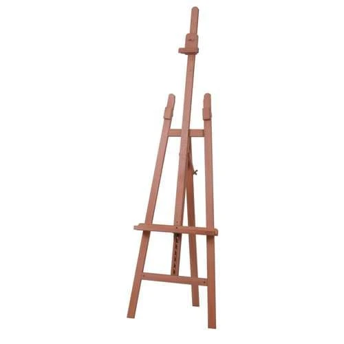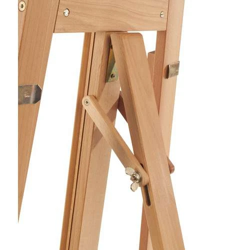 This Mabef M13 basic easel has a minimum height of 1.15m and maximum 2.25m. It weighs 5kg, is 45cm wide, and supports canvases up to 1.20m.
