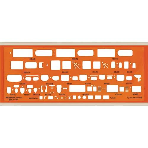 The Minerva Sanitation Template N° 4a offers numerous shapes from the plumbing sector e.g. baths, sinks, bidets, toilets, basins etc. It is ideal for architectural drawing.