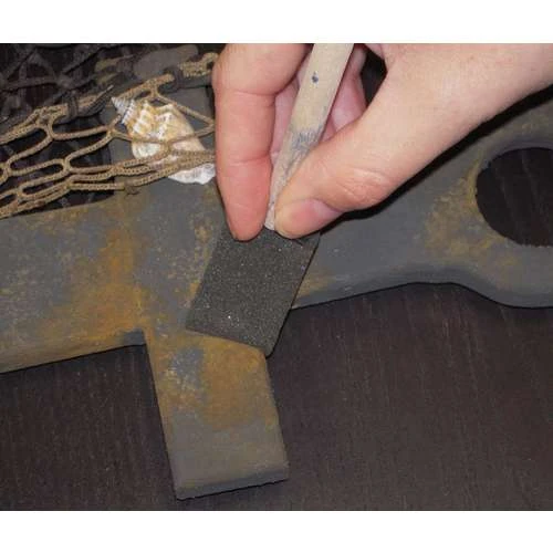 The Modern Options Rust Effect solution should be applied to the still slightly tacky layer of the iron primer (item code 24475). After a few minutes, the first rust spots are visible. In the following hours, this effect is amplified. Depending on the desired effect, the rust effect solution should be used in 2 to 3 layers. We recommend using Modern Options Primo Primer & Varnish (item code 29064) to protect your finished item.