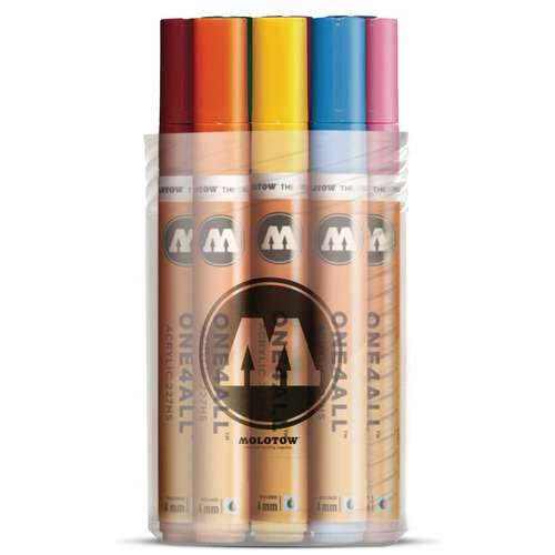 Molotow One4All 227HS Main-Kits contain 12 One4All Pumpmarkers and are ideal for artists, writers and street artists, and as an introduction for beginners to the One4All acrylic colour system.