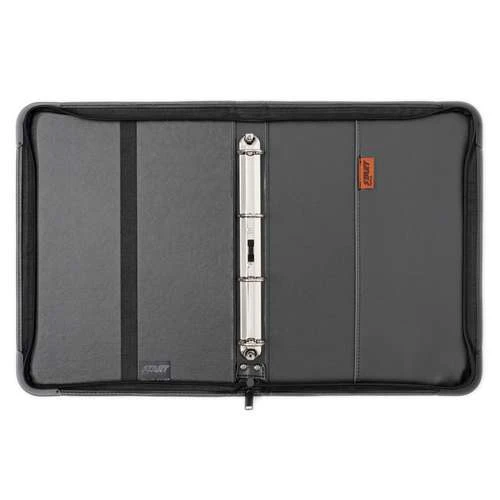 The sturdy, black corners protect the work from damage. The presentation folder has a solid ring mechanism with a locking system and ensures that the work hangs vertically when carried, without the rings opening unintentionally.