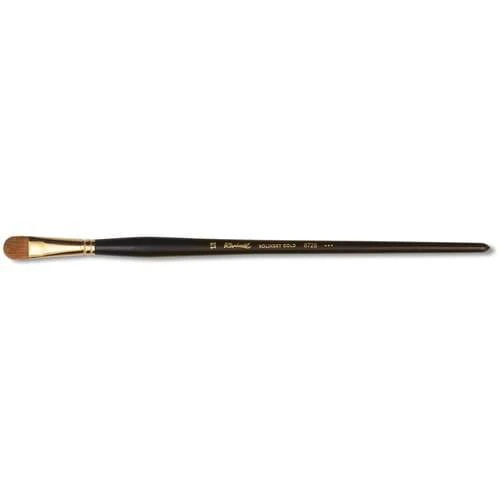 These Raphaël Kolinsky Gold Series 8728 Filbert Brushes have long black lacquered handles and seamless gilded ferrules.