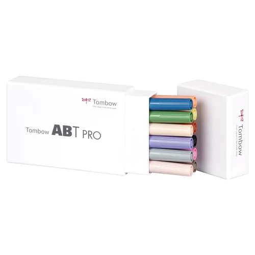 Tombow ABT PRO 12 Marker Sets contain selections of these alcohol-based markers developed specially for professional use. They are double-ended with a brush tip and a chisel tip.