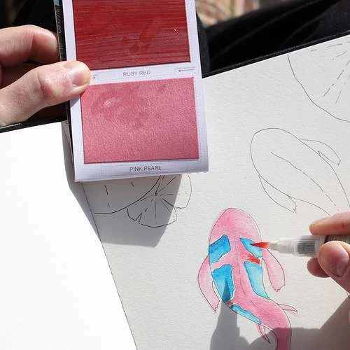 The set is practical and easy to take everywhere for travel, spontaneous creation or simply to let your imagination run wild. Each sheet is bound together, creating a small pad thin enough to fit inside a sketchbook to take with you. Simply use any wet brush or reservoir brush to pick up the pigment, it’s very similar to using pan watercolours. All these paints are 100% eco-friendly and are made in India by local women being paid a fair wage.